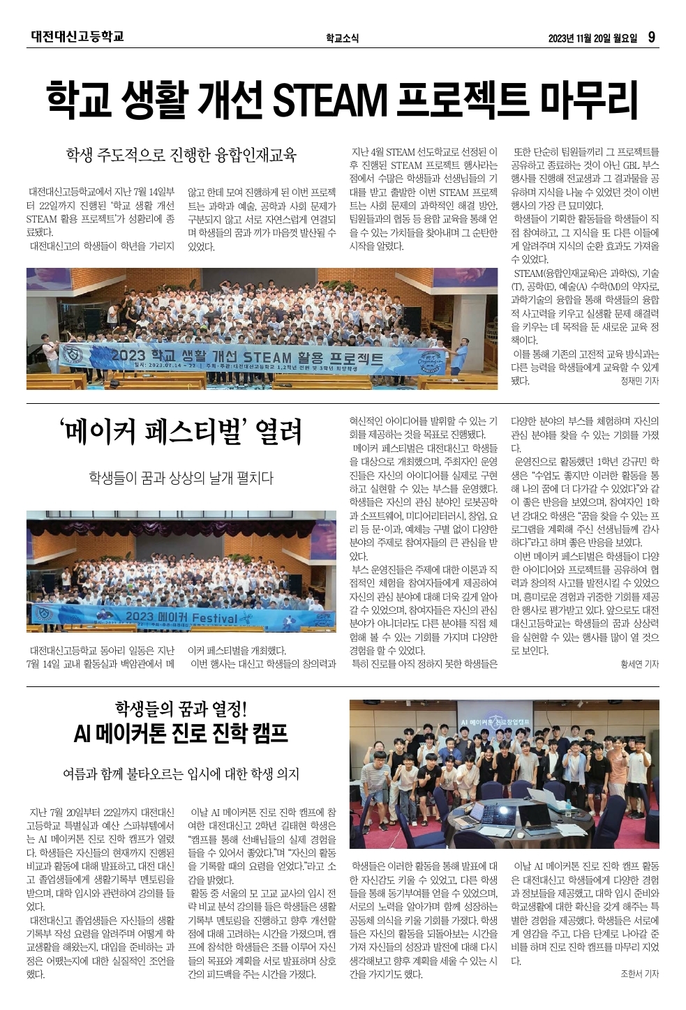 '지역 문제 우리가 해결' 대전 고교생들 '리빙랩 프로젝트' 성료 -중도일보 보도자료