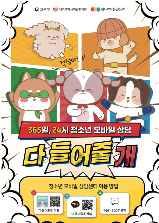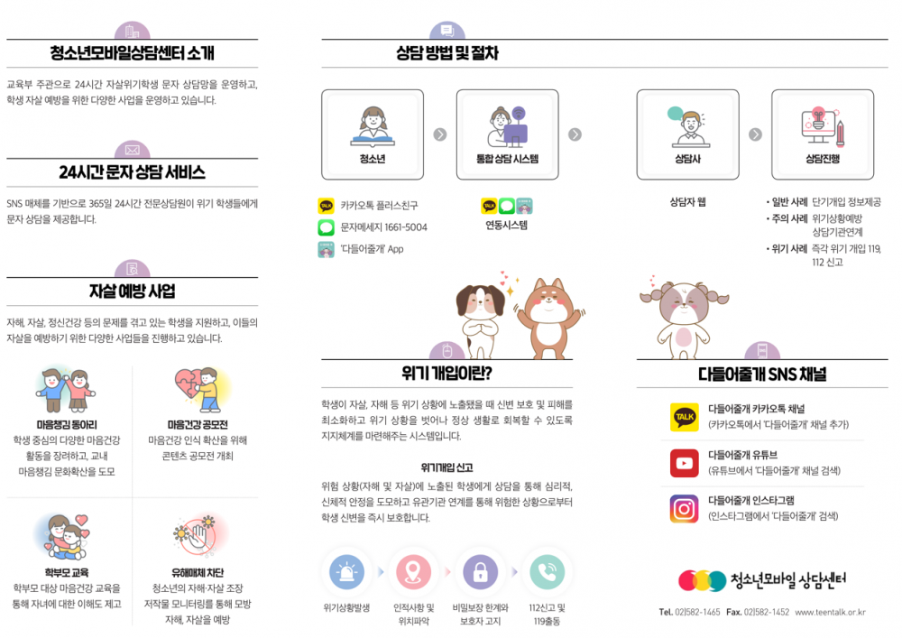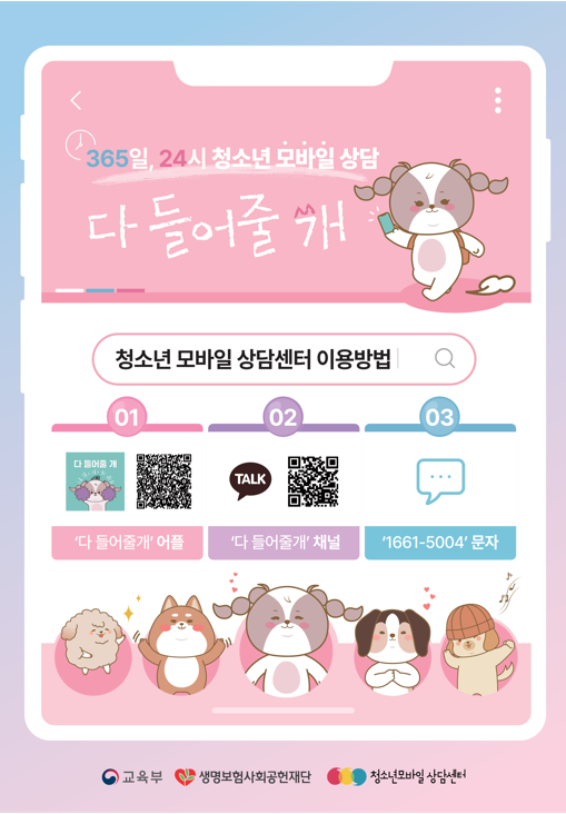 (사)마음건강 청소년모바일상담센터에서 운영하는「365일, 24시간 문자상담 서비스」를 안내합니다.