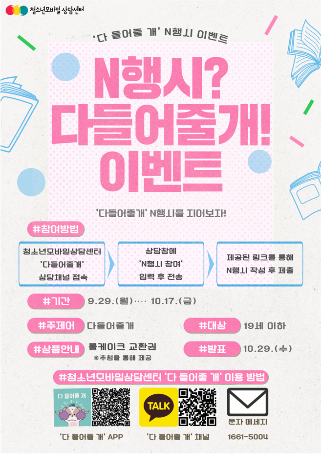 문자상담서비스 이용 홍보를 위한 「N행시? 다 들어줄 개!」이벤트를 실시하니 많은 참여 부탁드립니다!